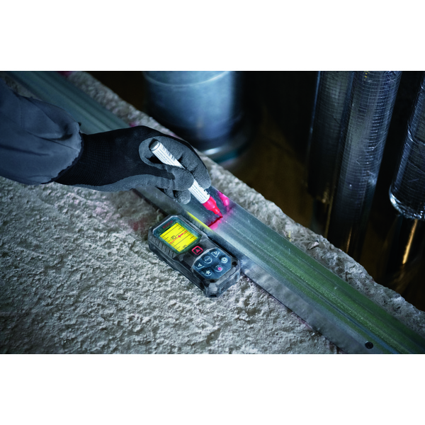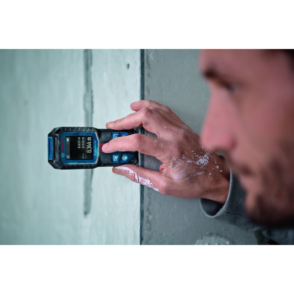 GLM 50-22 Professional takler tøffe forhold på byggeplasser. IP65-designet gir full beskyttelse mot støvpartikler og vannstråler, og det støtabsorberende huset tåler fall på 1,5 meter selv på hard betong. Favorittmålefunksjoner eller -innstillinger kan angis med en programmerbar knapp. Det intuitive brukergrensesnittet støtter 30 språk og består av en fargeskjerm med store tall for bedre lesbarhet. En ny hjelpe-funksjon som viser alle målealternativene gjør betjeningen selvforklarende. Avstandsmåleren har lang batteritid uansett om alkaliske batterier eller li-ion-batterier brukes. Batterier medfølger.