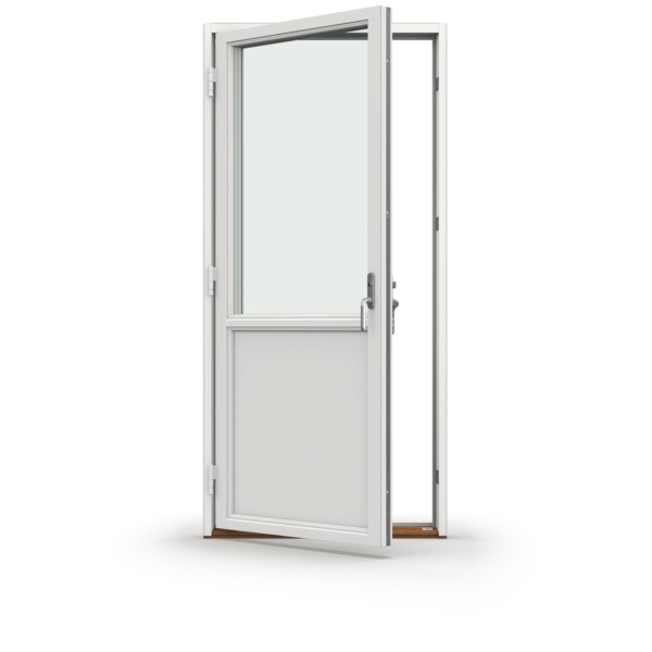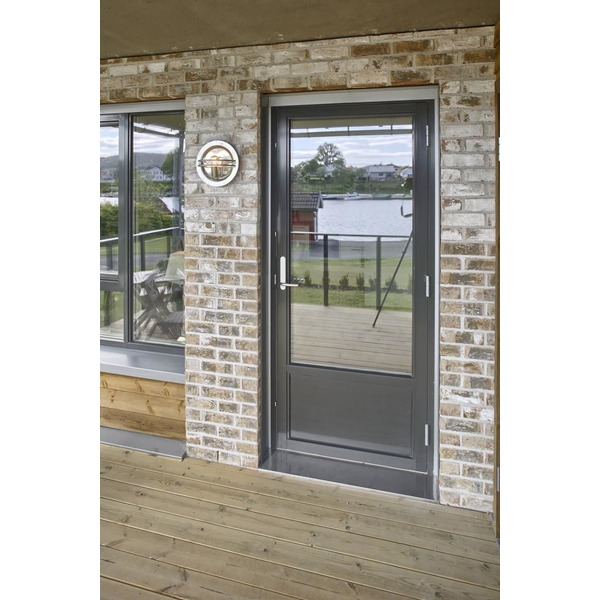 Innbruddssikret. Fås i standard og spesialmål. Overflatebehandling, aluminiums bekledning og glass leveres etter ønskede egenskaper og fargevalg. Fås også som godkjent branndør EI30