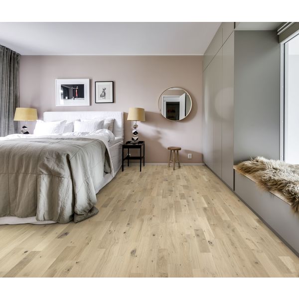 Frosted Oat Strip er inspirert av senhøstens kornåker dekket av frost. Den myke hvite og gjennomsiktige beisen lar det rustikke treet forsterke det naturlige designet komplettert med en ultramatt finish.