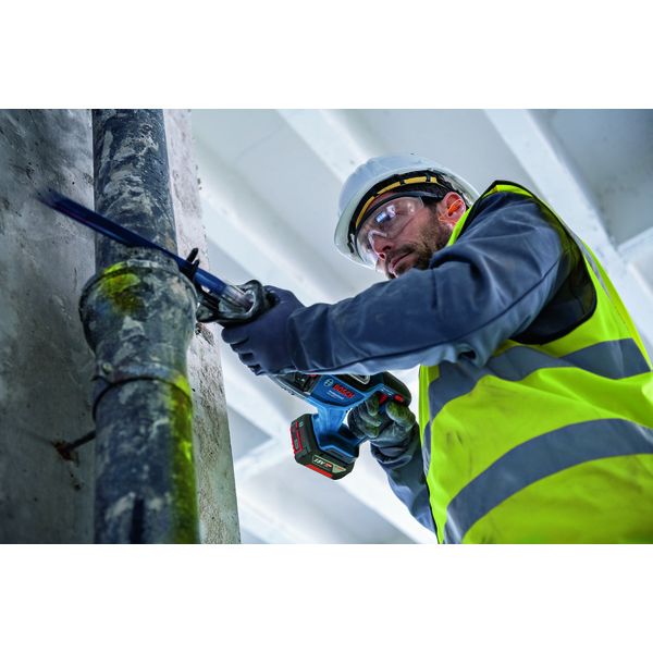 Takket være den nye BITURBO Brushless-teknologien har GSA 18V-28 maksimal ytelse med batteridrift – helt på høyde med en 1100-watts bajonettsag med ledningsdrift. Sagbladet smekkes på plass, uten bruk av verktøy, og er dermed enkelt å sette inn og ta ut med én hånd. GSA 18V-28 har videre et svært godt forhold mellom kraft og vekt, slik at det er lettere og mindre anstrengende å jobbe i enhver stilling. Verktøyet er perfekt til rivningsarbeid som omfatter forskjellige materialer som metall, tre, plast og isolasjonsmaterialer. Det passer dessuten til Bosch Professional 18V System (batteri og lader medfølger ikke). Produktet leveres i en L-BOXX.