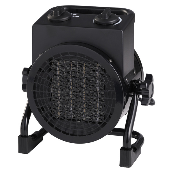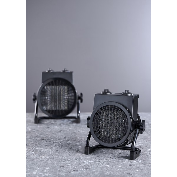 Smart byggtørker med 2 varmeinnstillinger: 1000/2000W. Den kommer med justerbar termostatsikring og fyller ikke særlig mye. Den har også sikkerhetsfunksjoner som overopphetingssikring med rele og stabile føtter, så den ikke så enkelt velter. VDE stikk med 16A.