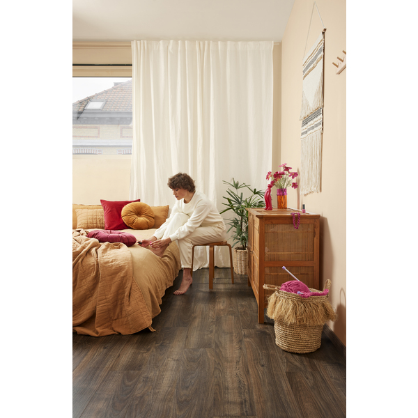 Java er naturlig eik med matt finish og diskré/rik tekstur i mørk brun. Nyt et vannavvisende laminatgulv hjemme med Ocean+ kolleksjonen. Skap en varm atmosfære med vakre, realistiske tredesign i et gulv som er lett å vedlikeholde, ripebestandig og enkelt å montere.