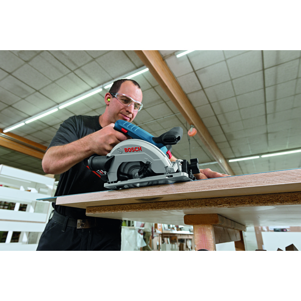 Kraftig og nøyaktig: Den batteridrevne sirkelsagen GKS 18V-57 G Professional for kraftfulle kutt på inntil 57 mm passer til vanlige styreskinnesystemer. Den sterke motoren leverer ytelse for dype kutt i mange forskjellige materialer. Sirkelsagen passer til Boschs styreskinnesystem for nøyaktig saging, men også til styreskinnesystemene fra Mafell, Festool og Makita. Den har en hurtigvirkende motorbrems som stopper sagbladet umiddelbart, noe som gir økt brukerbeskyttelse. Verktøyet kan brukes til å sage i heltre og trematerialer som OSB, kryssfiner og MDF. Det passer til alle Bosch Professional 18 V-batterier og -ladere (medfølger), og leveres i en L-BOXX.