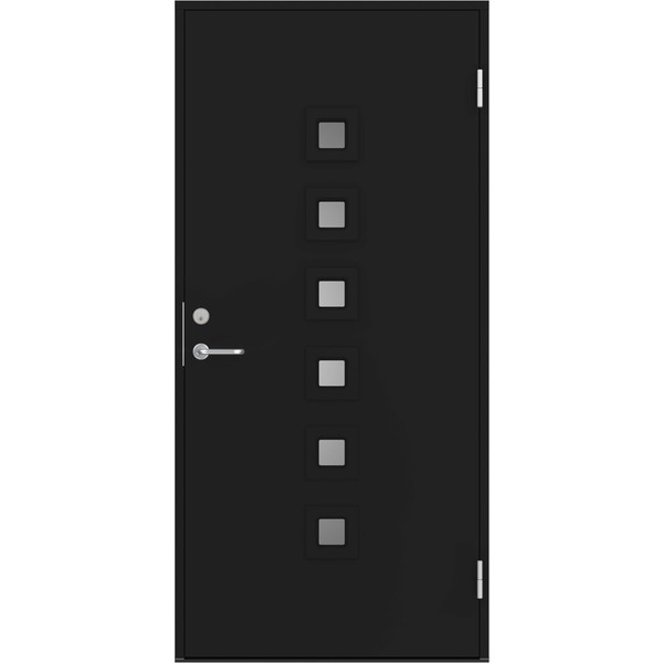 Swedoor C-7060 ytterdørsett 10×20 Venstre malt svart NCS S9000-N med klart glass. Dette er et dør i vår clever-line+ serie som har en lett konstuksjon med kjerne av EPS og er CE merket. Døren er hengt i en 105mm karm med kompositt terskel og har montert framefast hylser, skruer medfølger. Dørsettet kan fås i hvilken som helst godkjent NCS farge og hvis ønskelig ferdigmontert digitalt lås.