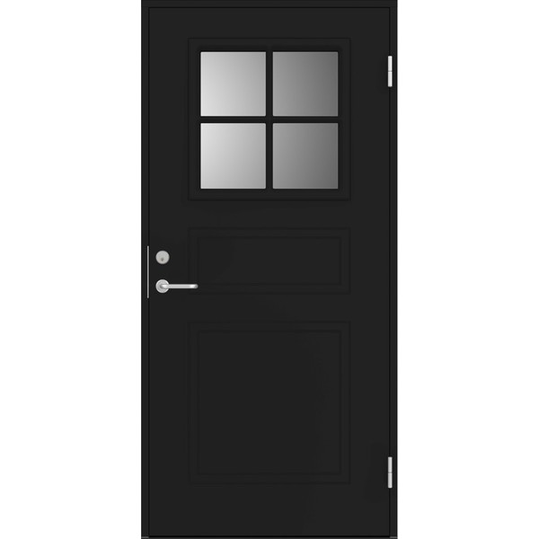 Swedoor C-8010 ytterdørsett 9×20 Høyre malt svart NCS S9000-N med klart glass. Dette er et dør i vår clever-line+ serie som har en lett konstuksjon med kjerne av EPS og er CE merket. Døren er hengt i en 105mm karm med kompositt terskel og har montert framefast hylser, skruer medfølger. Dørsettet kan fås i hvilken som helst godkjent NCS farge og hvis ønskelig ferdigmontert digitalt lås.