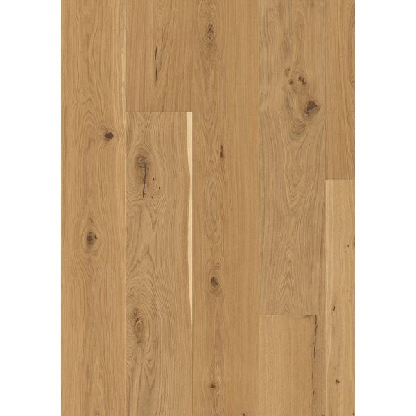 Eik Senses Chaletino 300×2750 mm plank spiller på originaliteten av treverket hvor sprekker og kvist er fylt for hånd med sort sparkel. Et svært naturlig tregulv som inviterer til å leve livet. Chaletino har eksepsjonell dimensjon som skaper utsøkte rom. Et gulv med levende historie, en unik glød, røft fargespill, store sparklede kvist og sprekker. Parketten er børstet og oljet, oljen inneholder bare naturlige ingredienser som gir svært god beskyttelse mot væsker, samt forbedret UV-stabilitet. For å forbedre slitestyrken anbefaler vi ett strøk med Boen Natural Oil før gulvet tas i bruk, deretter Boen Freshen Up for vedlikehold av mer trafikkerte områder. Husk matchende gulvlister for å skape helhet. Gulvet monteres enten med liming eller skruing. Egnet for gulvvarme.