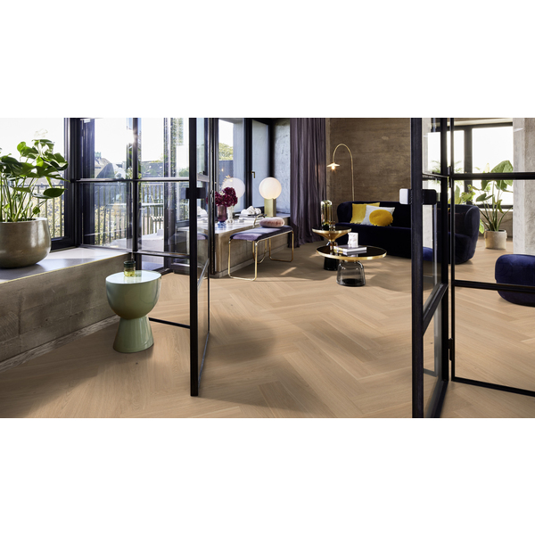 Eik Adagio 138mm Fiskenben click har en naturlig varm eikefarge. Jevne fargeoverganger og et rolig fargespill, kvist forekommer. Fiskebensmønster gjør at rommet ditt skiller seg ut. Det tidløse gulvmønsteret kan skape en klassisk atmosfære eller være er moderne element, alt etter din stil. Live Pure er en innovativ overflateteknologi som gir BOEN-gulvene en ubehandlet og ultramatt finish. Overflaten ser naturlig matt ut, samtidig som den er svært motstandsdyktig mot flekker, søl og UV-lys. Et eikegulv som er behandlet med Live Pure formidler et inntrykk av nyhogget treverk i sitt naturlige miljø. Husk matchende gulvlister for å skape helhet og eksklusivitet! Limfritt, rask og sikker legging med 5G Click. Velegnet for gulvvarme. Det må kombineres med Fiskeben Click A-stav (60090258)