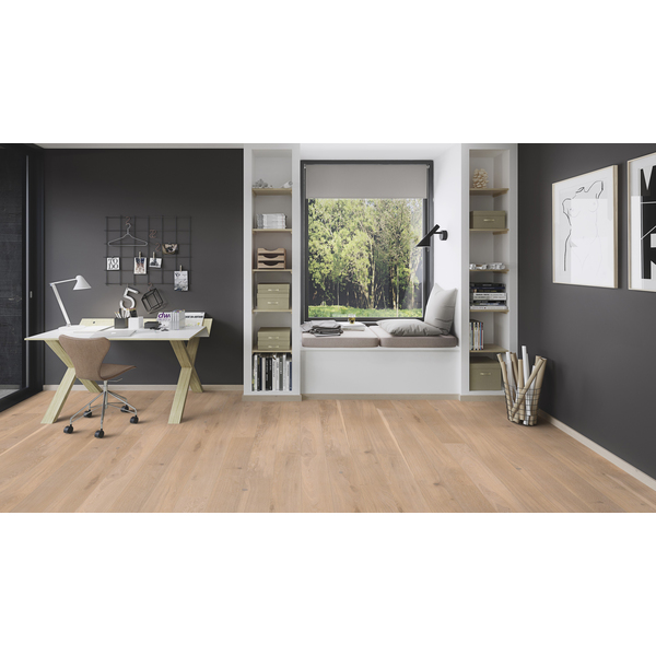 Eik Coral 181mm plank er det perfekte gulvet til den lyse, nordiske interiørstilen, overflaten blir behandlet med lysegrå og hvitpigmentert naturolje. Et røft fargespill, inneholder kvist. Plankene på 181 mm understreker perspektivet i rommet og fremhever den naturlige trefølelsen. Parketten er behandlet med naturolje. Oljen inneholder bare naturlige ingredienser som oljer fra solsikke, tistel og soyabønne og naturlig voks (karnauba og candelilla) og gir svært god beskyttelse mot væsker, samt forbedret UV-stabilitet. For å forbedre slitestyrken anbefaler vi ett strøk med Boen Natural Oil før gulvet tas i bruk, deretter Boen Freshen Up for vedlikehold av mer trafikkerte områder. Husk matchende gulvlister for å skape helhet og et eksklusivt utseende. 5G Click system. Velegnet for gulvvarme.