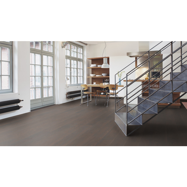 Eik Grey pepper 181mm plank er rå og autentisk, men samtidig svært elegant. Børsting og subtil mørkegrå pigmentering gjør at det passer både til rustikk og til urbant interiør. Børsting og naturolje fremhever den naturlige overflaten og trestrukturen og gjør gulvet godt og behagelig å gå på. For å forbedre slitestyrken anbefaler vi ett strøk med Boen Natural Oil før gulvet tas i bruk, deretter Boen Freshen Up for vedlikehold av mer trafikkerte områder. Ekte tre er et fornybart og levende materiale som gir en rekke helsefordeler med på kjøpet. Husk matchende gulvlister for å skape helhet og et eksklusivt utseende. Limfritt, rask og sikker legging med 5G Click system. Velegnet for gulvvarme.