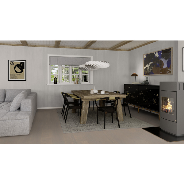 Eik Horizon 181 mm plank har en røykgrå, varm tone som understreker følelsen av ro. Det gjør rommet til det perfekte stedet å roe ned etter en travel dag. Plankene på 181 mm understreker perspektivet i rommet og fremhever den naturlige trefølelsen. Børstingen fremhever trestrukturen og gjør gulvet godt og behagelig å gå på. Live Pure er en innovativ overflateteknologi som gir BOEN-gulvene en ubehandlet og ultramatt finish. Overflaten ser naturlig matt ut, samtidig som den er svært motstandsdyktig mot flekker, søl og UV-lys. Et eikegulv som er behandlet med Live Pure formidler et inntrykk av nyskåret treverk i sitt naturlige miljø. Husk matchende gulvlister for å skape helhet og et eksklusivt utseende. Limfritt og sikker legging med 5G Click system. Velegnet for gulvvarme og nordisk klima.