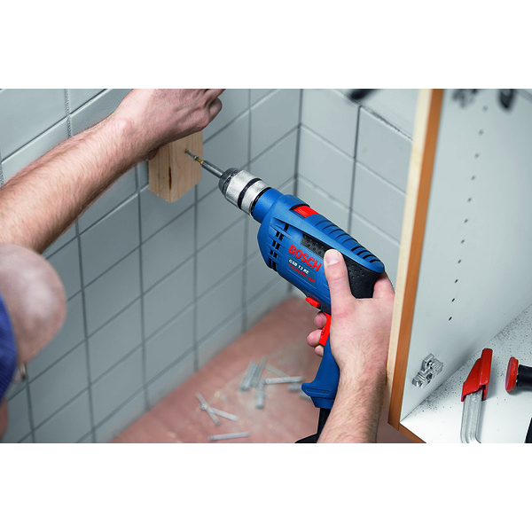 GSB 13 RE Professional er en kompakt nettdrevet 1-girs rotasjonsbormaskin i startsegmentet. Den lette konstruksjonen på 1,8 kg og den lille kabinettstørrelsen sikrer hendig håndtering og lett manøvrering. Den er også ekstra robust med en slitesterk nøkkelfri metallchuck. I tillegg leverer denne slagbormaskinen profesjonelle resultater til en optimal pris/ytelse-verdi. Dette verktøyet er beregnet for boring i mur, stein, tre og metall. GSB 13 RE Professional omfatter også funksjoner som turtallsvalg og variabelt turtall.