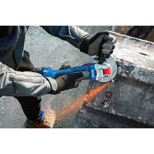 GWX 18V-7 Professional batteridrevet vinkelsliper er Boschs kompakte og praktiske løsning med solid 18 V-ytelse og X-LOCK-system. Den børsteløse motoren har kraft som en 700-watts ledningsdrevet vinkelsliper, for effektivt arbeid. Det nøkkelfrie X-LOCK-systemet sørger for at tilbehør skiftes på et blunk, slik at brukeren kan fokusere på det som virkelig betyr noe, nemlig jobben. Den lave vekten og det smale håndtaket gjør videre verktøyet komfortabelt å bruke. Vinkelsliperen er perfekt til saging i metall, fliser og murstein, og kan brukes med alt X-LOCK-tilbehør, Bosch Professional 18 V-batterier og -ladere samt Boschs støvavsug (GDE 115/125 FC-T Professional + GDE 125 EA-T Professional). Verktøyet leveres uten batteri og lader, men med en hardmetall- og en diamantkappeskive i en L-BOXX.
