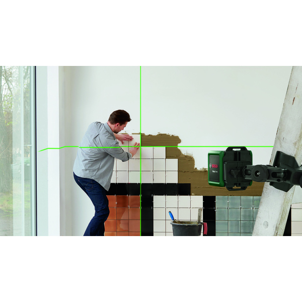 Den nye generasjonen i Bosch sitt sortiment «Quigo green krysslinjelaser» er miljøvennlig, har høy synlighet og er enkel å bruke. Med de grønne krysslaserlinjene er Quigo green perfekt til nivellering på steder med svært sterkt lys. Den har en forbedret nøyaktighet på +/- 0,6 mm/m og rekkevidde på opptil 12 m. Både huset, tilbehøret og emballasjen til Quigo green består hovedsakelig av resirkulert materiale, og måleverktøyet har i tillegg optimert energiforbruk. En universalklemme MM 2 og en adapterplate for enkelt feste gjør krysslinjelaseren enda mer komfortabel å bruke (medfølger). Måleverktøyet er perfekt til oppheng av bilder og montering av gardinstenger, flislegging og montering av kjøkkeninnredning. Leveres med 2stk batterier i en eCommerce-kartong.