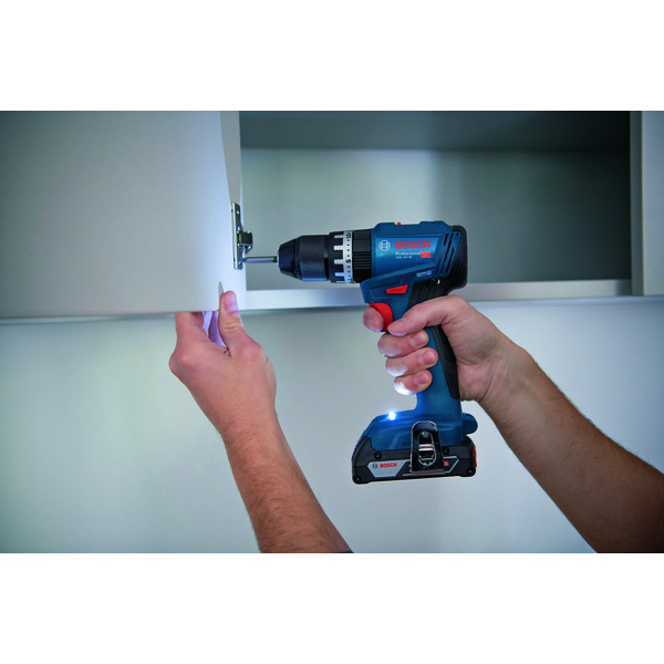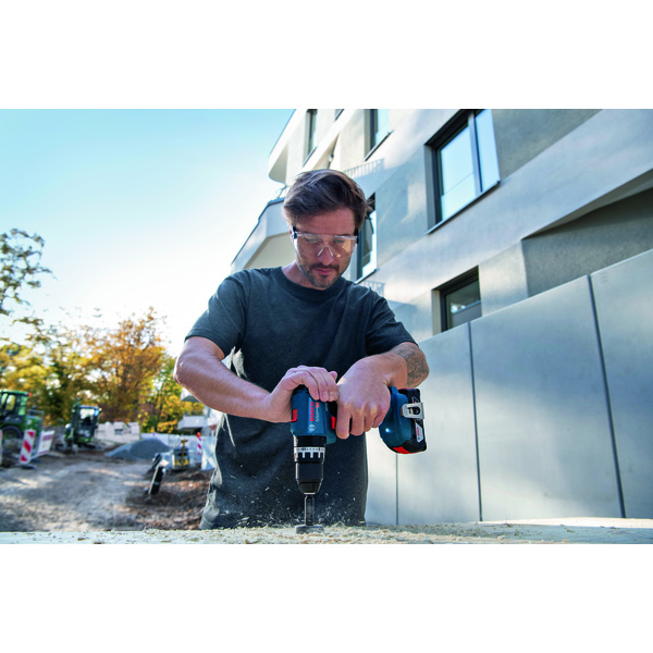GSB 18V-45 med børsteløs motor gir lang levetid og kraft til alle vanlige oppgaver. Den har et maksimalt dreiemoment på 45 Nm og et turtall på 1900 o/min. Kombimaskinen har også en 13mm metallchuck, for svært god momentoverføring. Med den lave vekten og de kompakte dimensjonene kommer den til overalt, og belteklipset som følger med, gjør den enkel å transportere. Maskinen skrur inn skruer inntil 10mm i tre og borer inntil 35mm i tre, og inntil 10mm i metall eller mur. Den er utviklet for håndverkere som krever høy ytelse ved krevende oppgaver, og for arbeid på vanskelig tilgjengelige steder. Den er kompatibel med Bosch Professional 18V System og batterier av ulike merker fra batterialliansen AMPShare. Verktøyet leveres med batterier + lader og et 82-delers tilberhørsett i et L-Case.