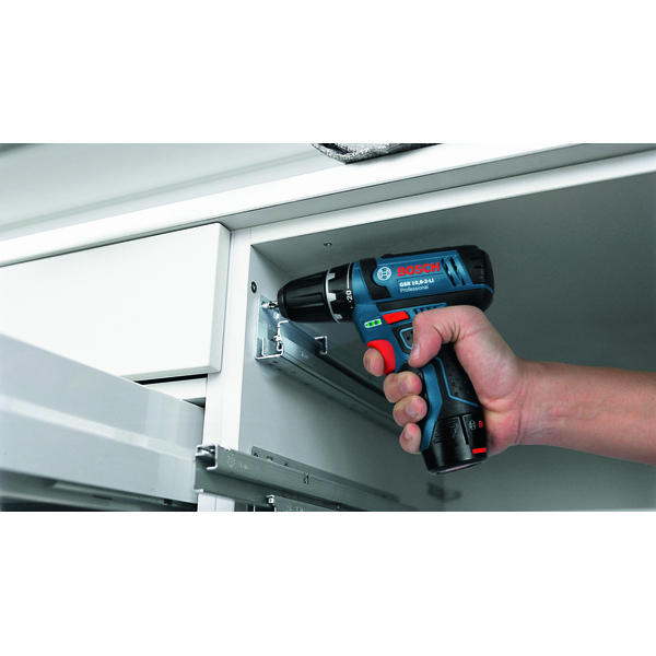 Den batteridrevne bor-/skrumaskinen GSB 12V-15 Professional med slagboringsfunksjon har det beste forholdet mellom kraft og størrelse i Bosch sin 12 V-kategori. Med et dreiemoment på 30 Nm ved hard skruing og 0-1300 o/min er maskinen en ideell kombinasjon av kraft og størrelse. Det kompakte designet gjør den svært brukervennlig og sørger for at den er ideell til arbeid over hodehøyde og på trange steder. Overbelastning, overoppheting og dyputlading hindres av maskinens elektroniske cellebeskyttelse. Slagboringsfunksjonen til verktøyet er beregnet for boring i tre med en maksimal diameter på 19 mm, opptil 10 mm i stål og mur, og for skruediametere på opptil 7 mm. Verktøyet passer til alle Bosch Professional 12 V-batterier og -ladere (medfølger), og leveres i en transportkoffert m/ bitssett.