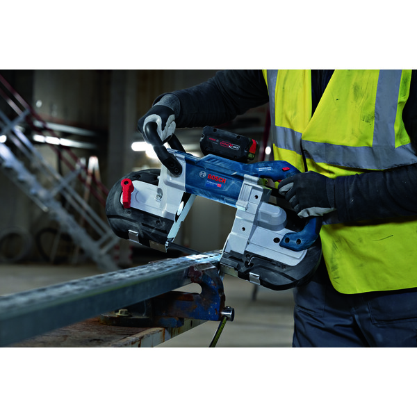 Den kraftige båndsagen med børsteløs motor for raske, dype kutt så å si uten gnister i metall.