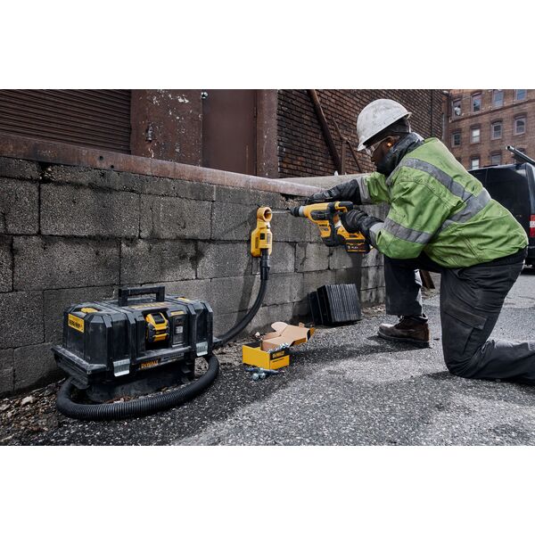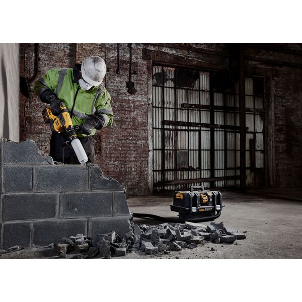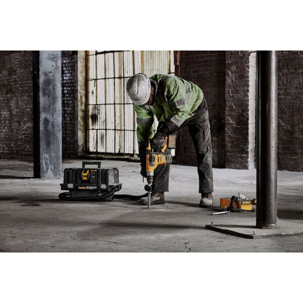 DEWALT SDS+ kombihammer. Kategoriledende boreytelse ved høy hastighet – mer enn 74 hull (18 mm Ø x 80 mm) per lading. Rotasjonsstopp for lett meisling i gips, fliser og lettbetong, og anslagsstopp for rotasjonsboring i tre og metall. Børsteløs motor med høy kapasitet XR FLEXVOLT 9,0 Ah 18V/54V batteriplattform for svært lang brukstid og mindre vedlikehold. Perform & Protect: klasseledende vibrasjon på 6,3 m/s, reduserer brukertretthet. Kraftig, hvitt LED-arbeidslys med forsinkelsesfunksjon for bedre synlighet. Ideell til boring av anker og festehull i betong, mur og murverk fra 4 mm til 32 mm. Et antirotasjonssystem oppdager tap av verktøykontroll og reagerer ved å kutte strømmen umiddelbart. Wireless Tool Control. Leveres som naken enhet i en TSTAK-kasse.