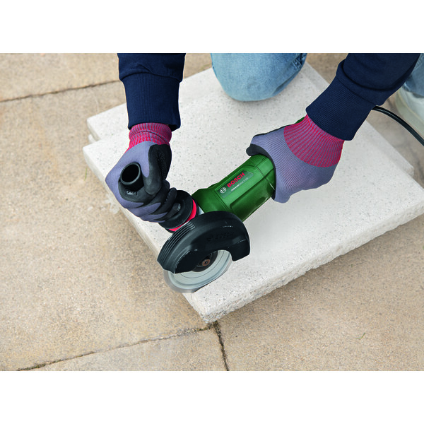 Vinkelsliperen kombinerer kraft og betjeningskomfort og er perfekt for middels store til store gjør-det-selv-prosjekter. Med ergonomisk design, lav vekt, smalt hus og minimal vibrasjon er den komfortabel å bruke, også når oppgaven tar lengre tid. Den sterke 850 W-motoren sørger for høy ytelse. Verktøyet er designet for sliping, skjæring og børsting på metall, stein, betongblokker og fliser. Det har også et vernedeksel som tilpasses raskt og beskytter mot gnister under arbeidet.