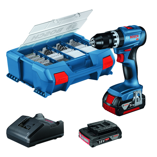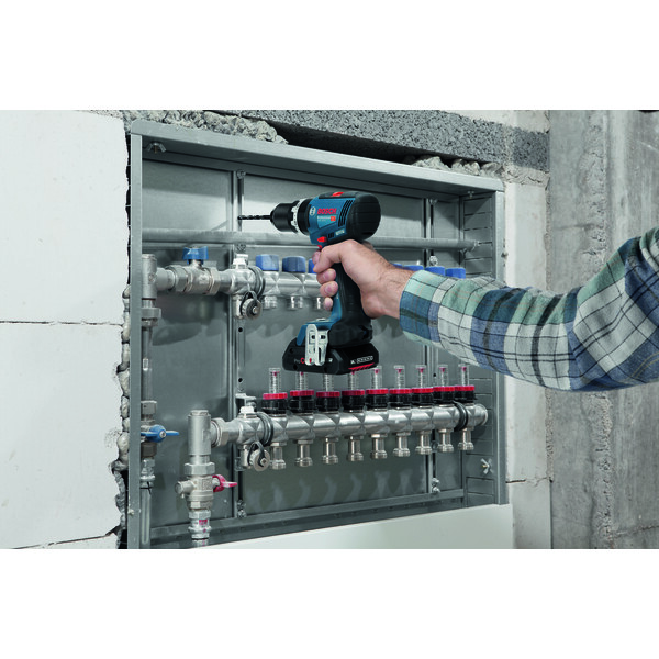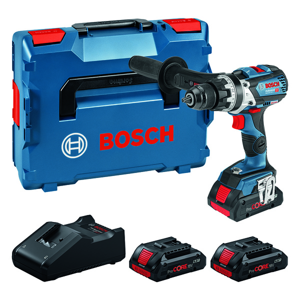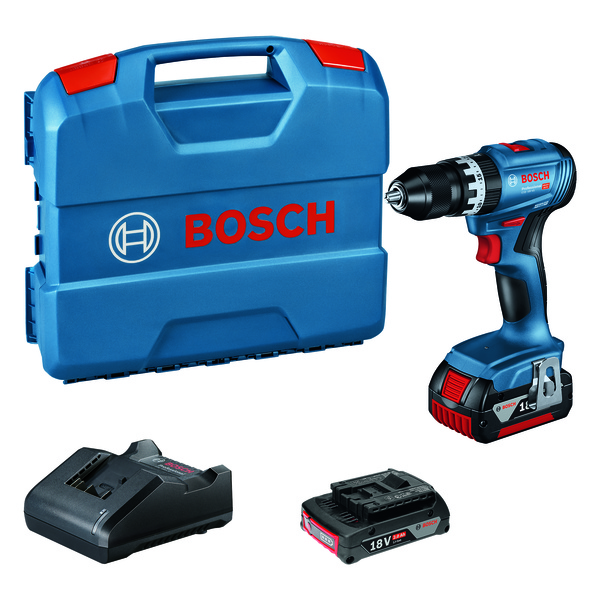 Hvis du er ute etter en allsidig batteridrevet bor-/skrumaskin med nok kraft også for krevende skruing, er Bosch GSB 18V-65 Professional riktig valg for deg. Den borer enkelt gjennom metall, tre eller plast, takket være det forbedre dreiemomentet på 31/65 Nm og turtallet på 0-550/0-2100 o/min, og den har i tillegg en slagfunksjon for boring i murverk. Trange, vanskelige steder er ikke noe problem med hodelengden til dette kompakte verktøyet på bare 175 mm. Vi har dessuten tenkt på sikkerheten din også, med KickBack Control som kan slås på og hindrer uventede tilbakeslag på verktøyet. I tillegg får du bedre lys under arbeidet med de to arbeidslysene. Leveres med 2×4,0AH ProCORE18V batterier og lader i L-BOXX.