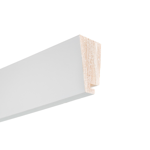 Taklist 21x34mm enkel skygge furu malt NCS S 0502-Y Bomull. Leveres i faste lengder 4,4m. Taklist med skjult spor for bildeoppheng. Bildis oppheng selges separat.